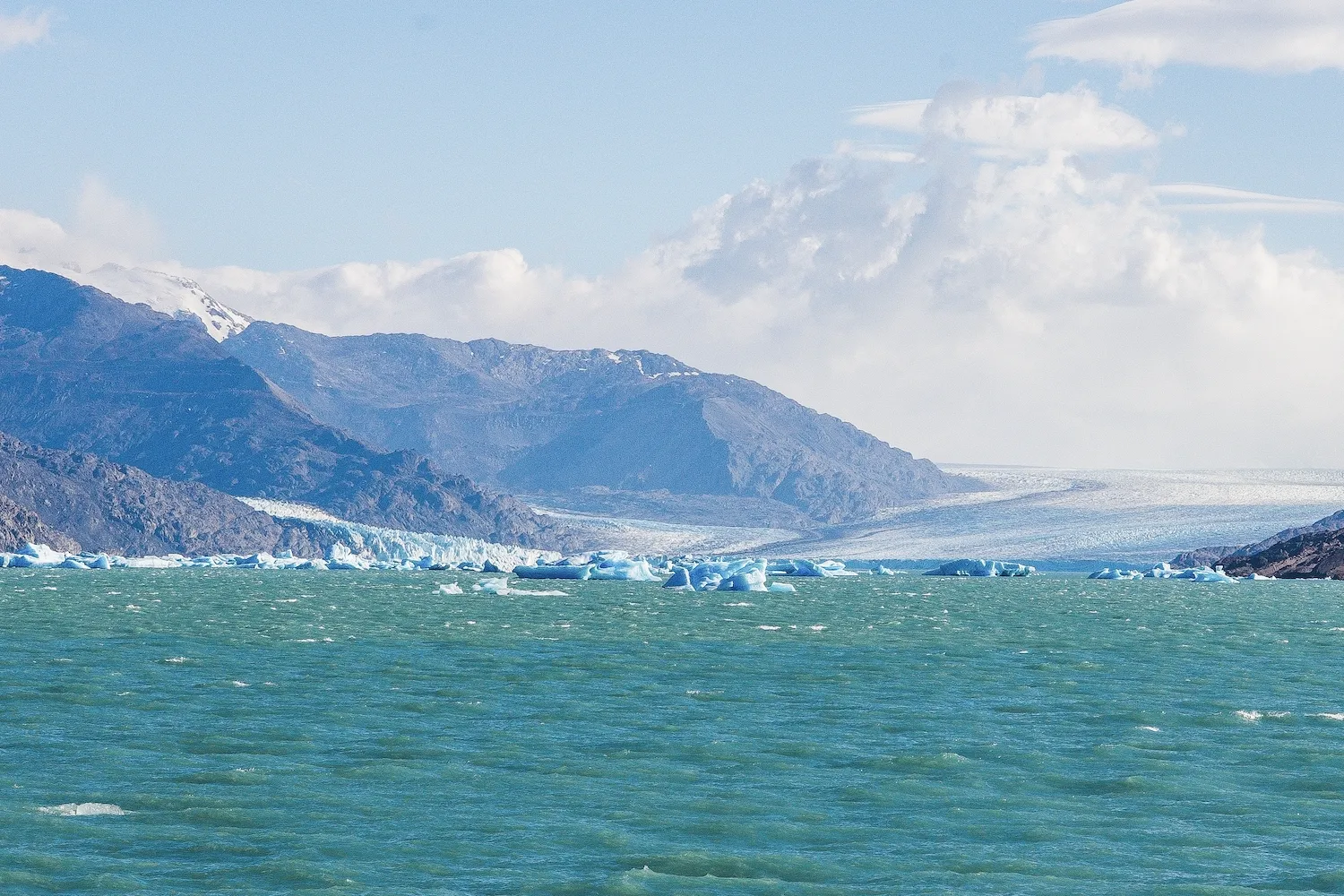 国立公園内で2番目の規模。ペリトモレノ氷河の約3倍。十数年前までは、公園内最大規模の氷河だったが、大規模な崩落を繰り返し、現在は2番目。氷山群が見どころ。