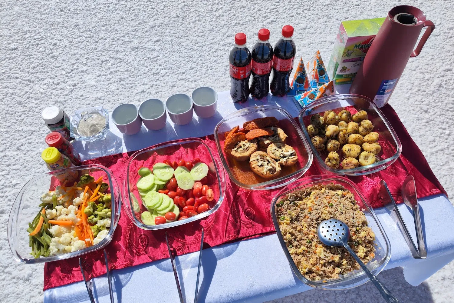 塩のホテル宿泊込みのツアーには食事も含まれています。