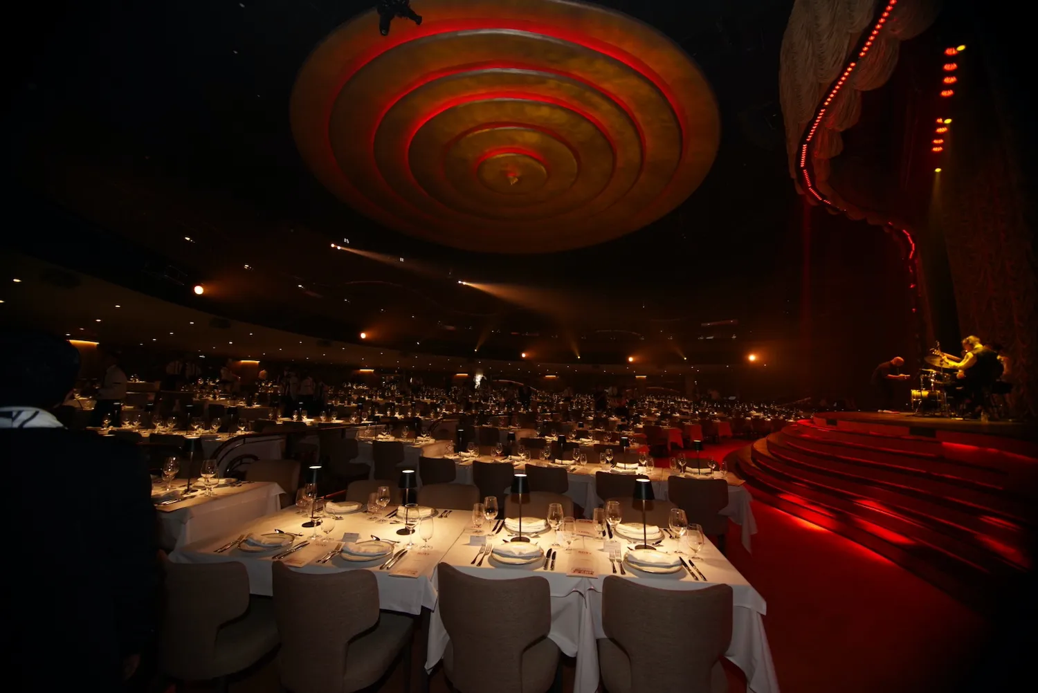会場は、リオ最古級の映画館「Cine Roxy」。その美しいアール・デコ建築が幻想的な照明と融合し、忘れられない一夜を演出します。