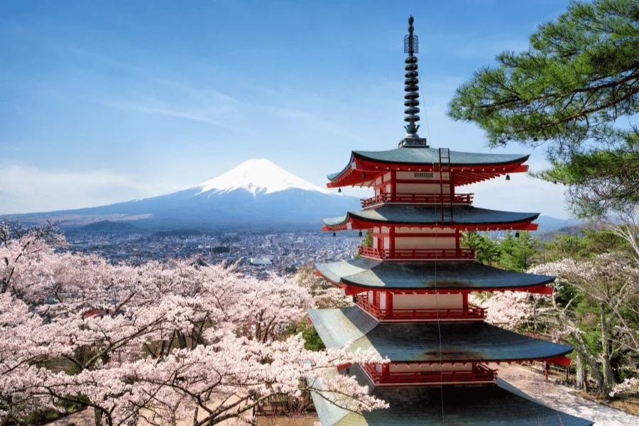 Localizado em Fujiyoshida, este mirante oferece uma visão panorâmica que alinha o pagode de cinco andares ao Monte Fuji, este é o cartão-postal mais famoso do Japão.