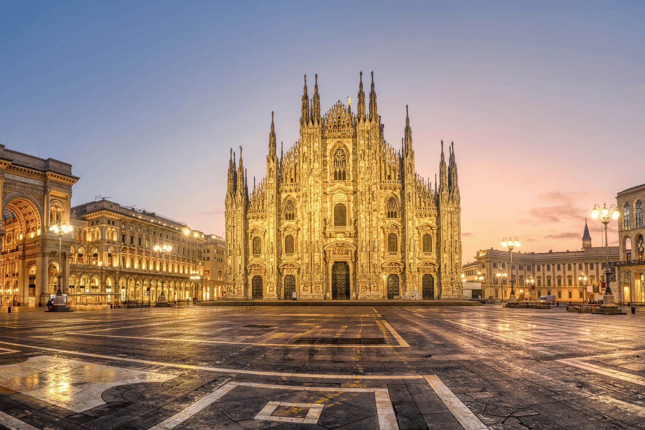 Café da manhã. Saída para um passeio panorâmico, no qual acompanhados por um guia local passaremos pelo Castelo Sforzesco, pela Via Dante e pela Via Cordusio até chegar à Galeria Victor Emmanuel 11, ponto de encontro da sociedade milanesa, e terminaremos no Piazza del Duomo, onde admiraremos o majestoso exterior da catedral.