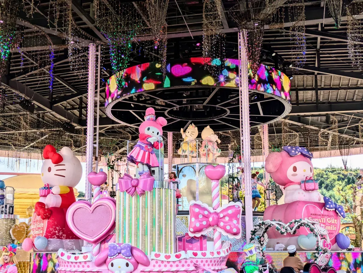 Durante a visita, você poderá assistir a espetáculos ao vivo fascinantes, incluindo o tradicional “Parade Parallel”, realizado diariamente com a presença da Hello Kitty, My Melody e outros personagens queridos da Sanrio. O parque também conta com restaurantes e lojas temáticas que tornam a experiência ainda mais especial e memorável.